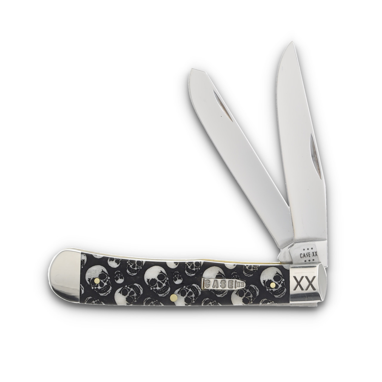 Case XX Skulls Smooth Natural Bone Trapper Folding Knife with Bullet Shield and XX Engraved Bolsters CA06740SK