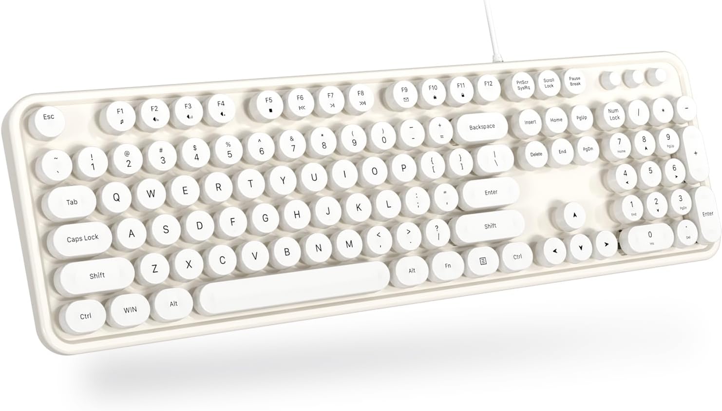 - TYPEWRITER RETRO KEYBOARD WITH PRECISION TYPING- The classic typewriter style is integrate with modern style keyboard technology. Responsive and incredibly supportive, all interactions are positive, and enjoy the “Click”feeling by the old royal typewriter, so you can type with confidence.