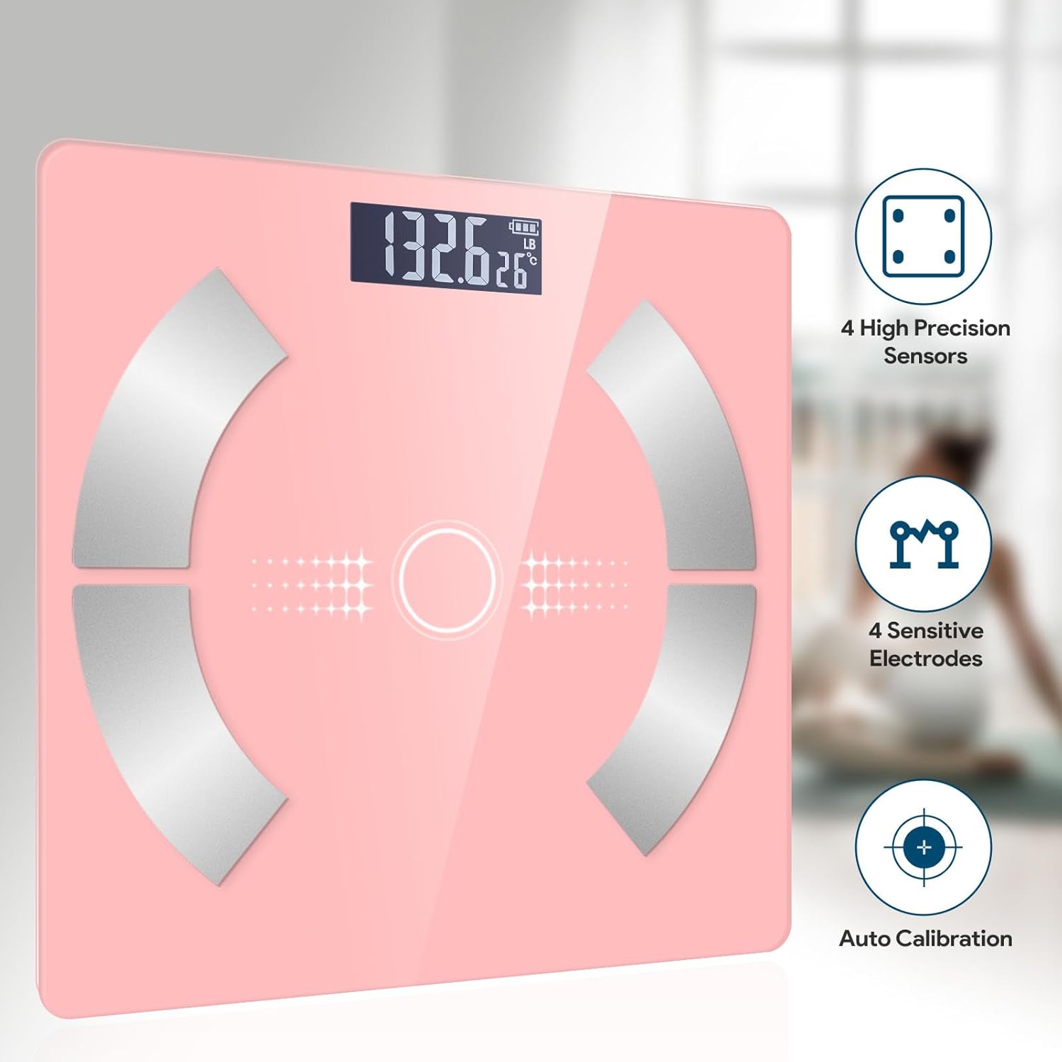 - 【Body Composition Analysis】 Our weight scale can synchronize 13 basic measurement data to your mobile phone via Bluetooth, such as BMI, body fat rate, visceral fat, body water, skeletal muscle rate, bone mass, protein, BMR, muscle mass, Accurate age and other data.