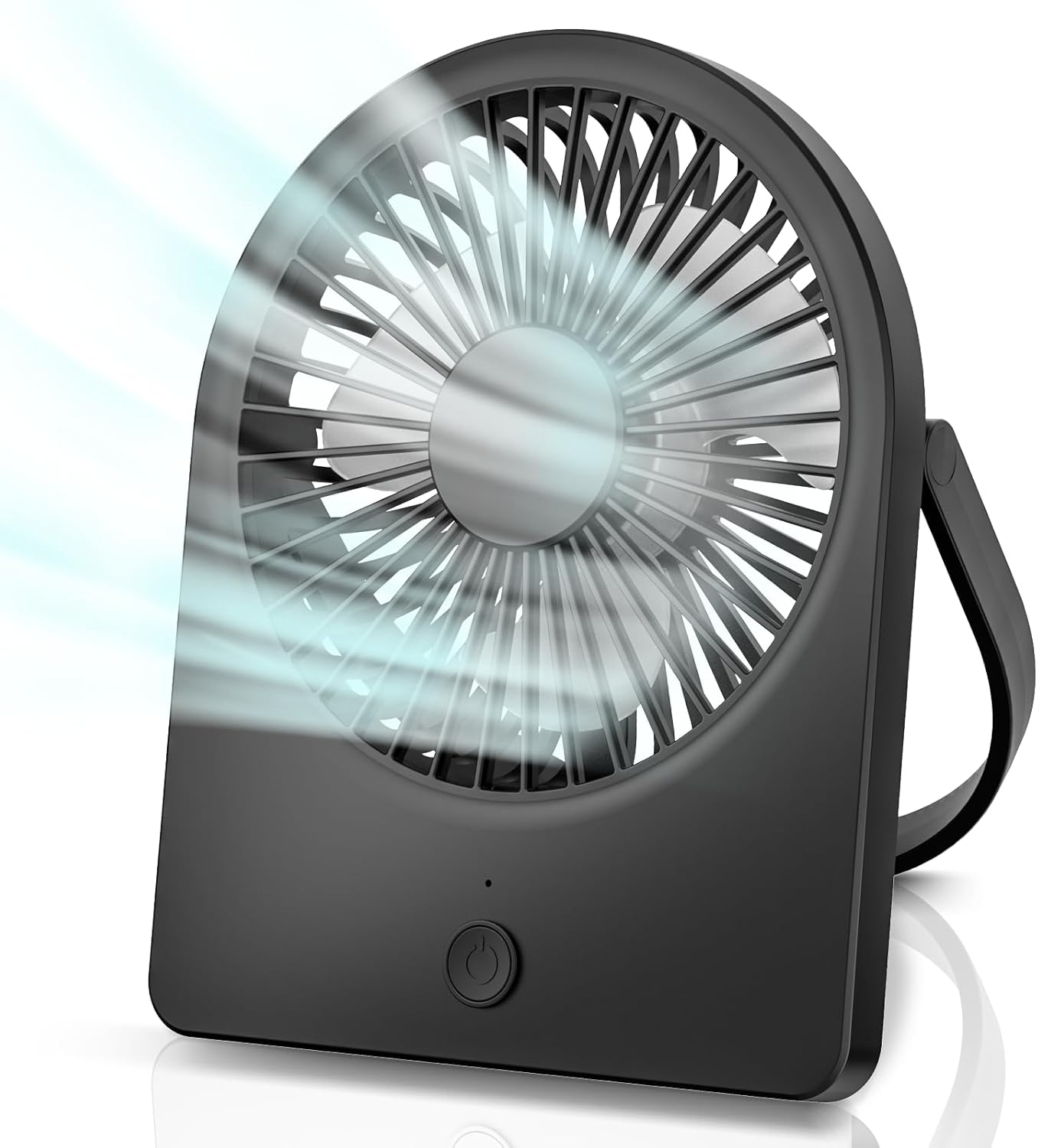Portable Desk Mini FAN, -A Corded Powered Small Personal Fan, Foldable Office Desk Accessories for Home, Desktop, 3-speed Hangable Cruise Essentials with Strong Wind, Black