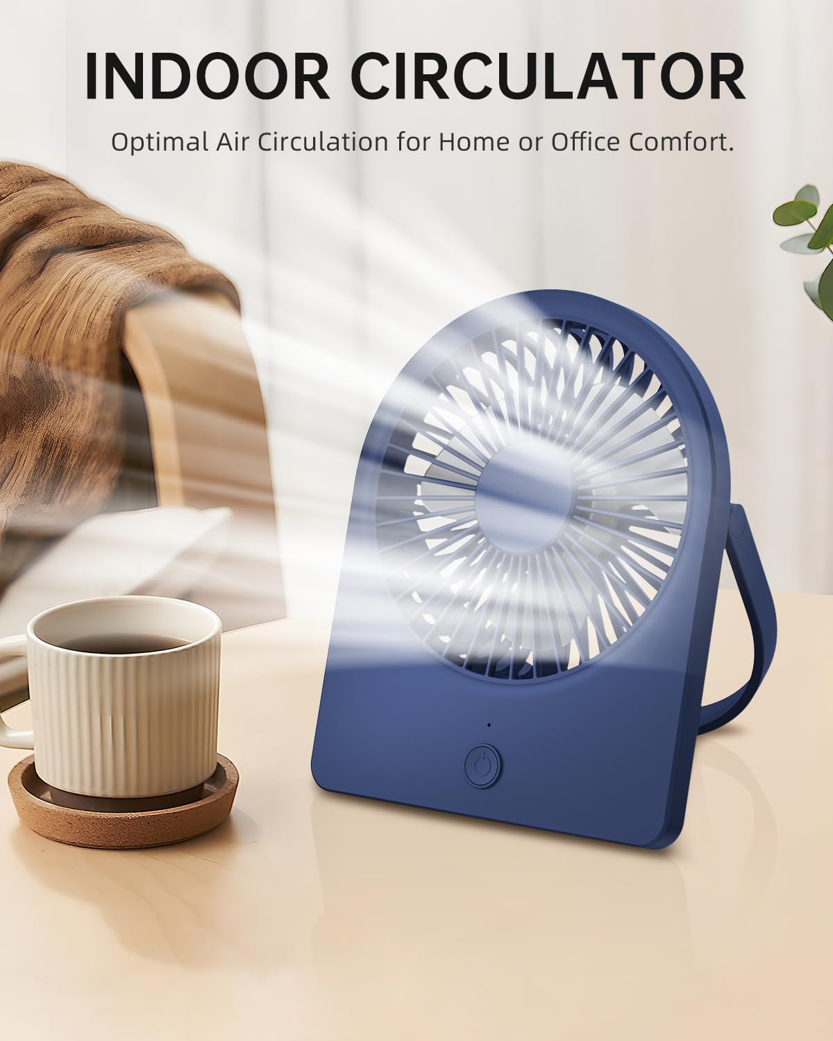 Portable Desk Mini FAN, -A Corded Powered Small Personal Fan, Foldable Office Desk Accessories for Home, Desktop, 3-speed Hangable Cruise Essentials with Strong Wind, Blue